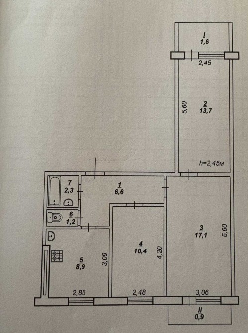 Квартира в звичайному стані і потребує ремонту. У квартирі вікна і труби частково мп, є лічильники на світло(день/ніч), газ та воду. Є лічильник тепла на будинку.