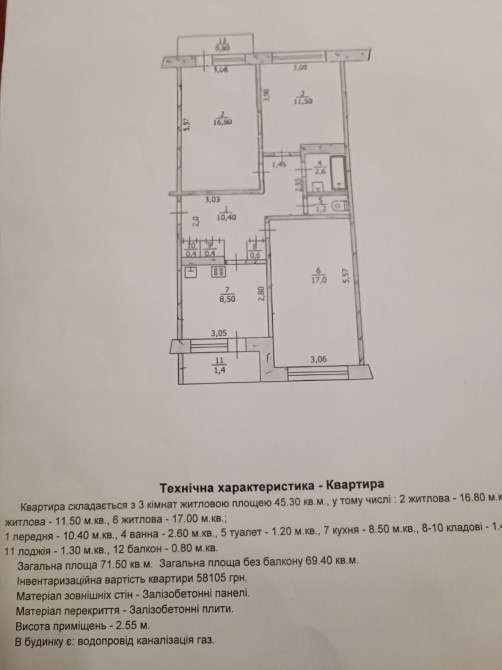 • Общая площадь 71.5 м2