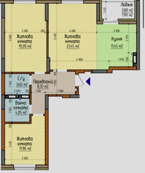 • Лоджія – 3,8 м²