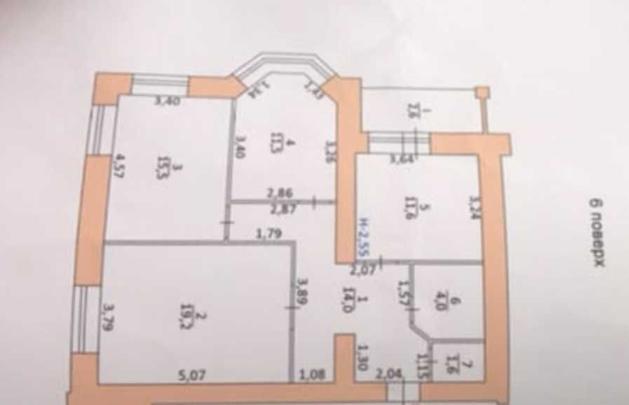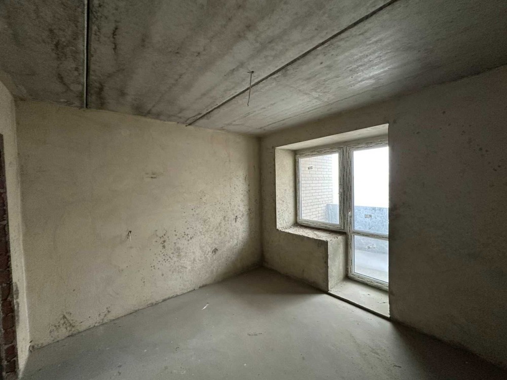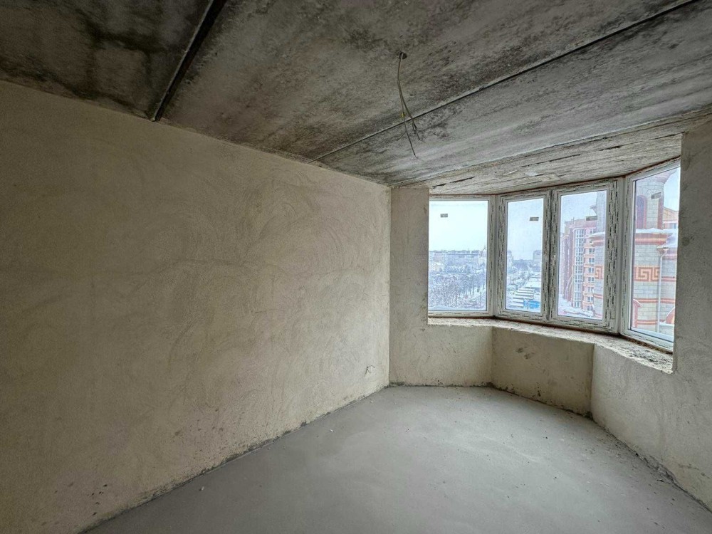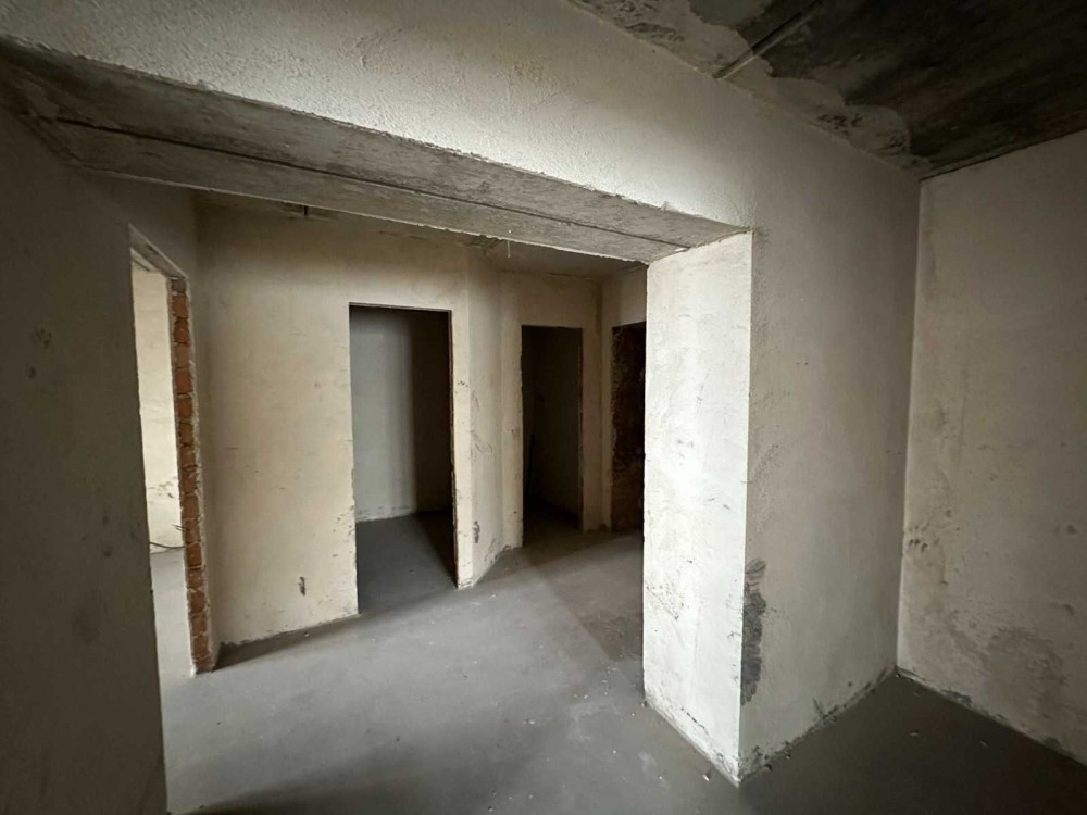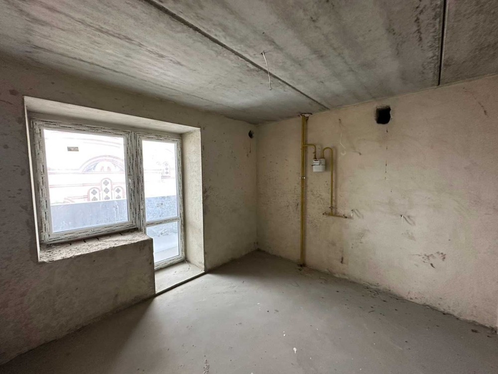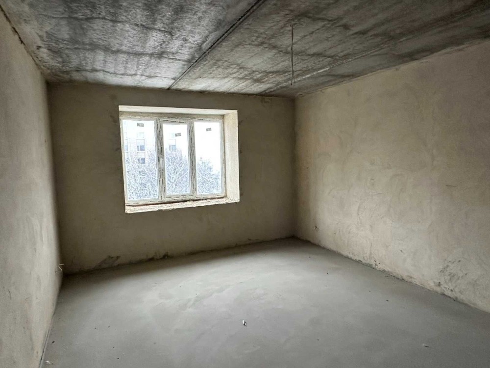 Квартира розміщена на шостому поверсі, стан - сира після будівельників під індивідуальне газове опалення, залито чистову стяжу.