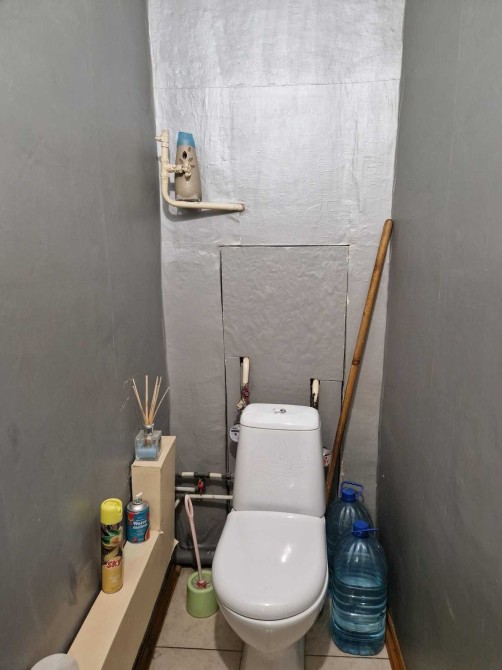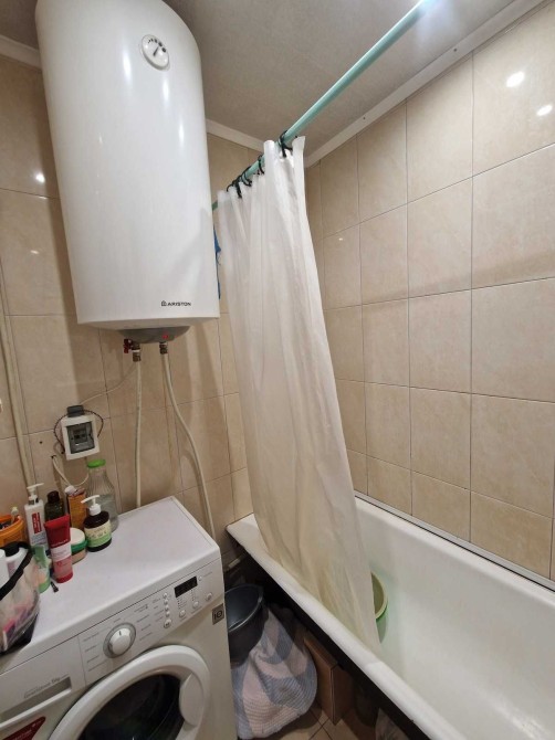 Санвузол роздільний: у ванній кімнаті плитка, у туалеті плитка на підлозі та миючі шпалери на стінах. Сантехніка замінювалась.