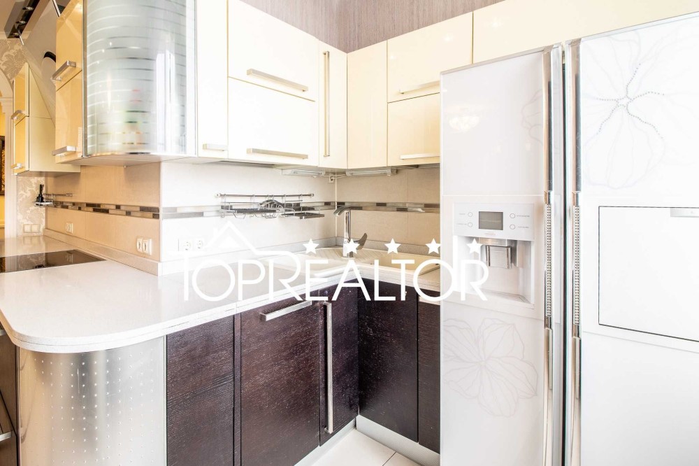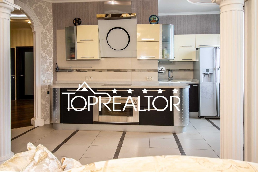 АН TopRealtor пропонує до продажу гарну затишну 3-кімнатну квартиру з якісним ремонтом в елітному будинку ЖК "Олімп". Квартира площею 135 кв.м передбачена для проживання сім'ї з 4-х осіб: кухня-студія 37 кв.м, 2 окремі спальні, 2 лоджії, 2 санвузли. Розташована на найвищому панорамному поверсі. У 2020 році ремонт у вітальні та холі було оновлено. Ремонт робився для себе із застосуванням натуральних матеріалів, всі меблі та техніка найкращих світових виробників: кухня Genovo, духова шафа Imperial - elite Miele, меблі в їдальні та спальні виготовлені на замовлення в Італії, дизайнерська витяжка Elica, стільниці з натурального каменю, морозильна шафа з душем та сантехніка Hatriac, ван парний, пральна машинка Miele, всі люстри пр-ва Італія, місткий шафа-купе в передпокої, плитка керамограніт, всі підлоги з підігрівом, дизайнерські кондиціонери Daikin Azure і Panasonic. Будинок ЖК "Олімп" знаходиться в зручному місці, в безпосередній близькості розташовані метро Наукова, парк Горького, Сумський ринок, престижні школи та приватні дит.сади, басейн Піонер, спорт майданчики. Ціна на квартиру суттєво знижена, не проґавте свій шанс!