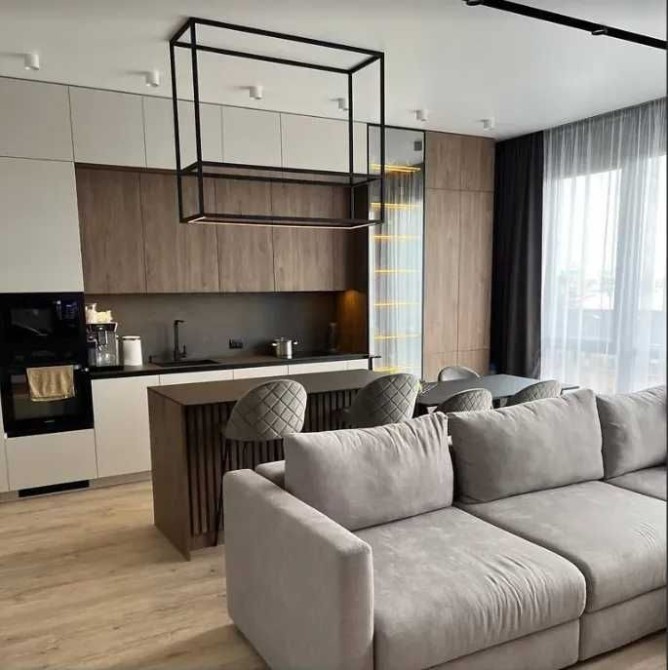 Дві окремі спальні, простора кухня-вітальня з островом, санвузол з ванною, велика гардеробна.