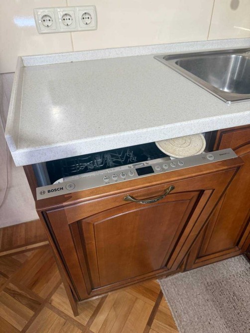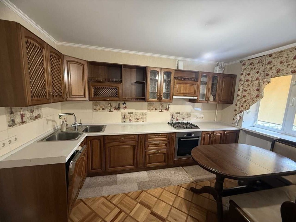 Просторная трехкомнатная квартира преобразилась благодаря перепланировке в уютную кухню-гостиную и две спальни. Вся коммуникация была полностью заменена, установлены фильтры на воду, бойлеры Bosch на кухне и в санузле. Кухня, изготовленная из натурального дерева, оснащена всей необходимой бытовой техникой. Полы - паркет, а в коридоре предусмотрены вместительные шкафы для хранения.
