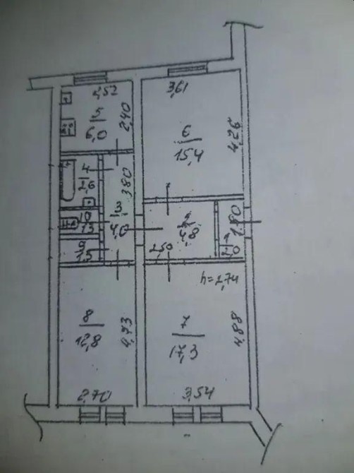 Загальна площа 67 м2, житлова 45.5 м2, кухня 6 м2.