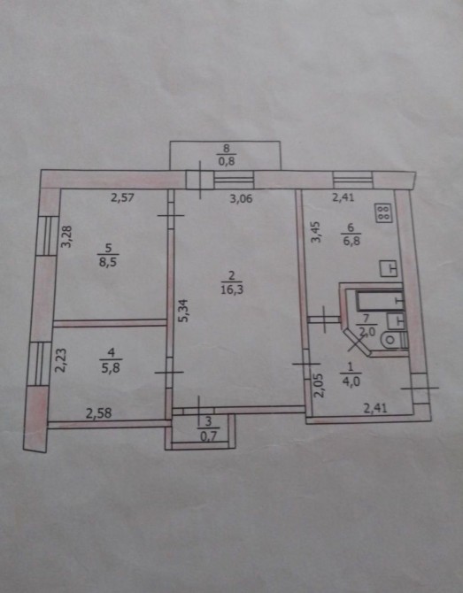 • Площадь кухни 6.8 м2
