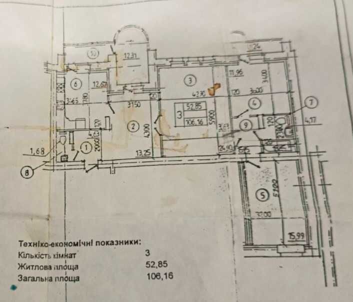 Загальна площа квартири складає-109 м2 , житлова 75 кв.м,