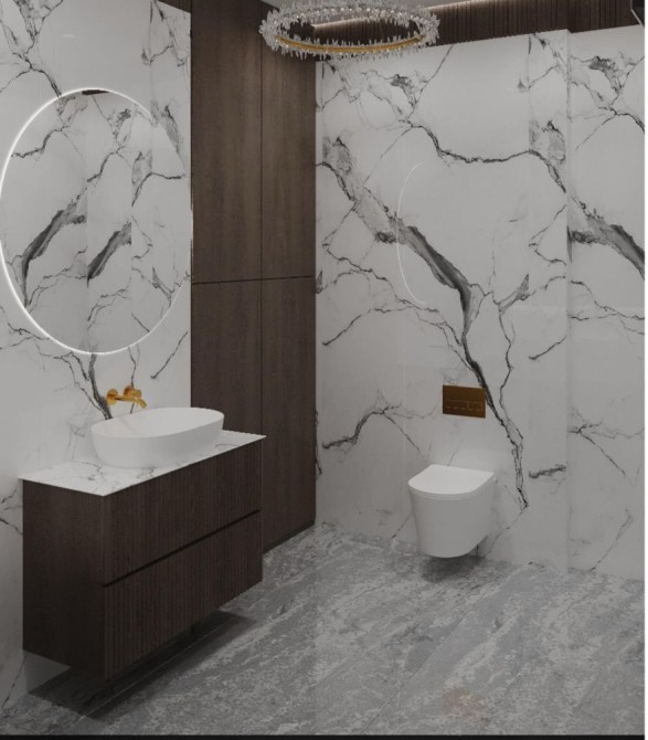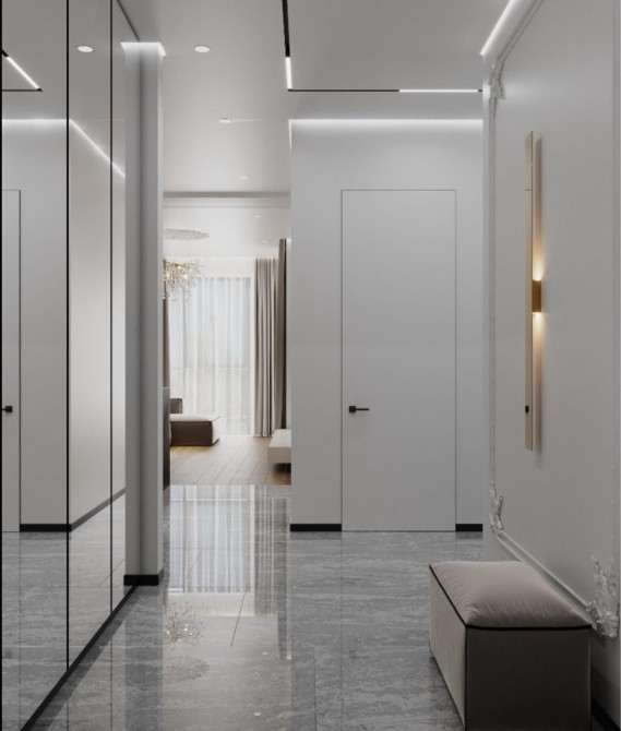 Новий дизайнерський ремонт ( керамограніт крупний формат, паркет, стеля з тіньовим профілем з підсвіткою (гіпсокартон).