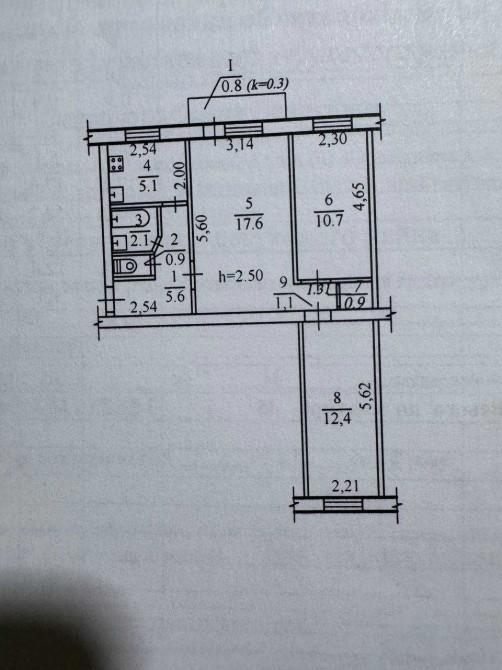 • Площадь кухни 5 м2