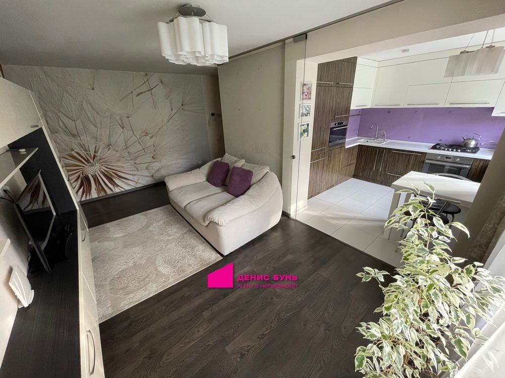 Очень грамотная планировка: кухня-студия, 2 спальни, лоджия, санузел.