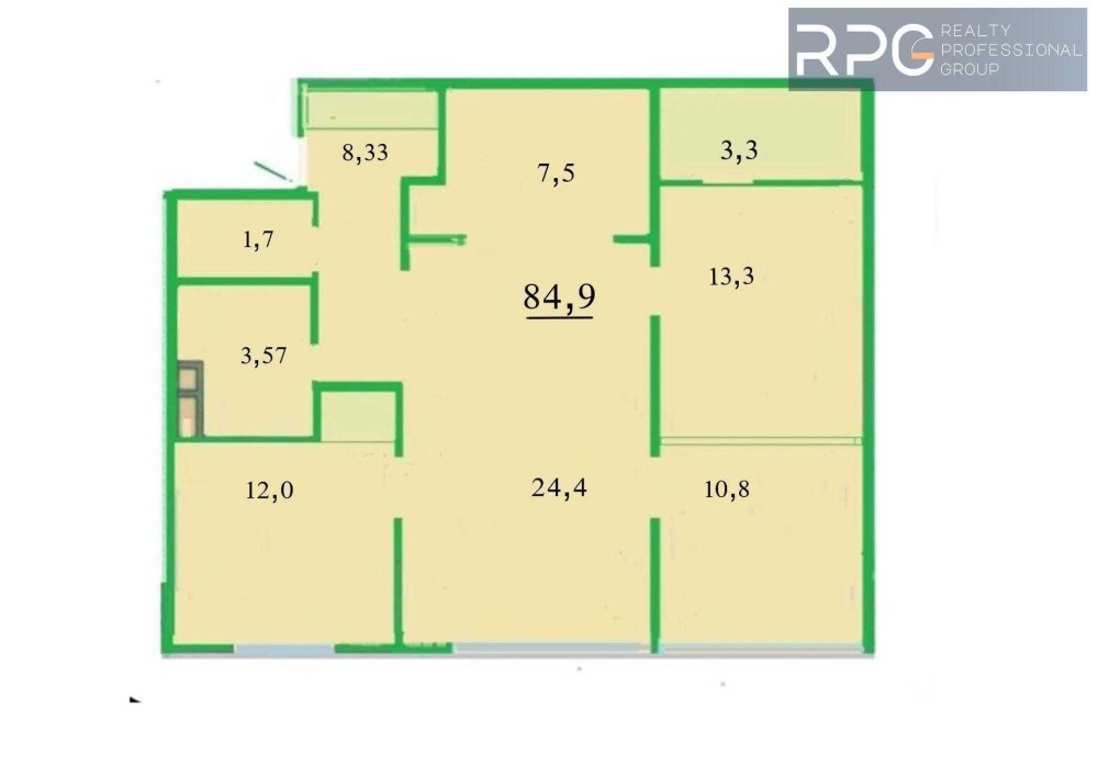 Кухня 7,9 м², суміжна з вітальнею 24,4 м²