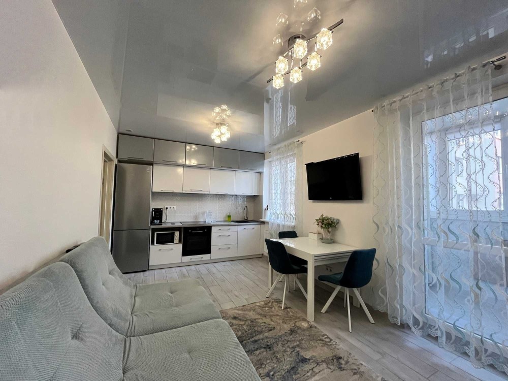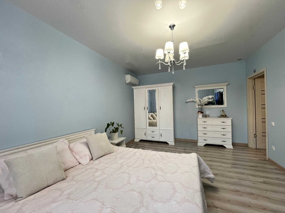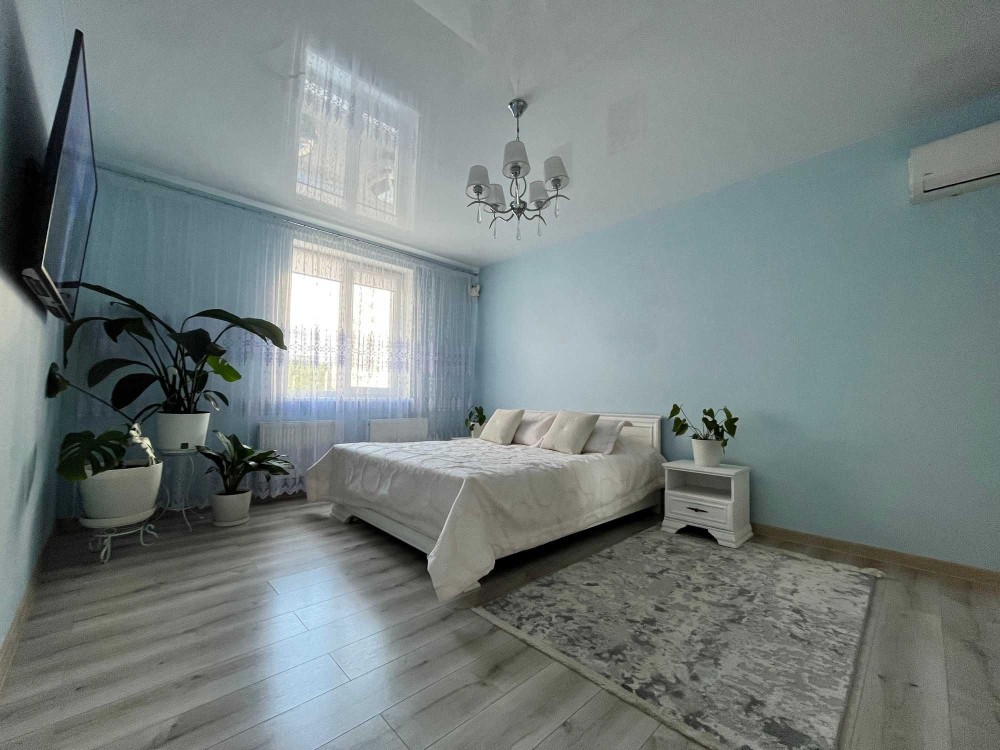 Квартира площею 76 м² з якісним євроремонтом, свіжим та практично новим.