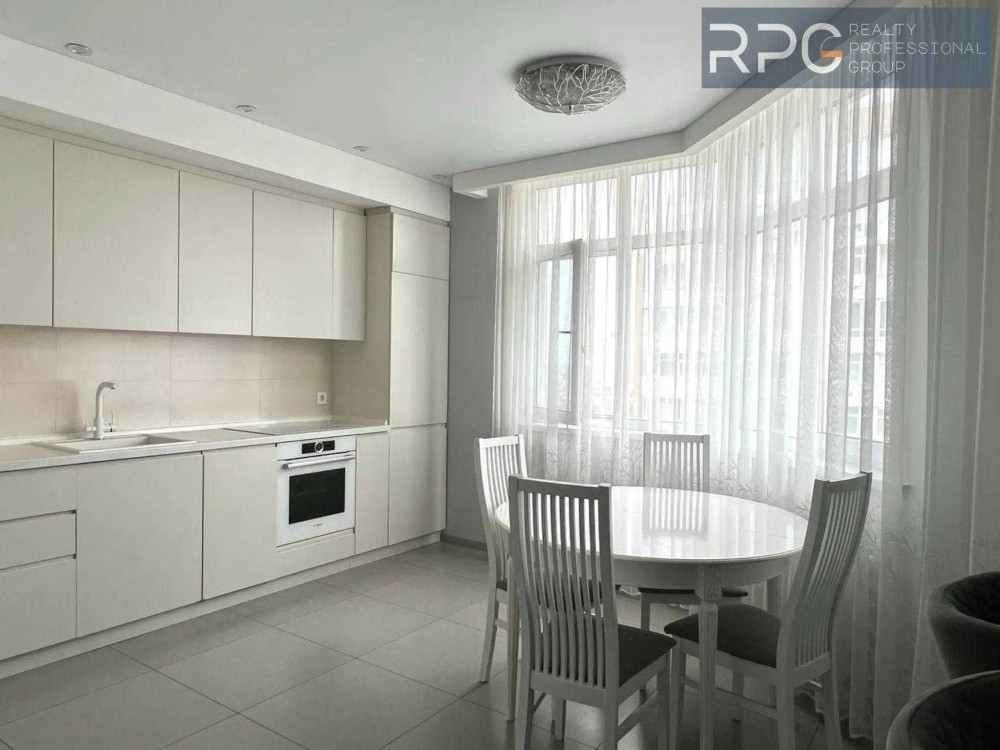 Кухня та вітальня об’єднані в простору зону, повністю укомплектовану якісними меблями та побутовою технікою.