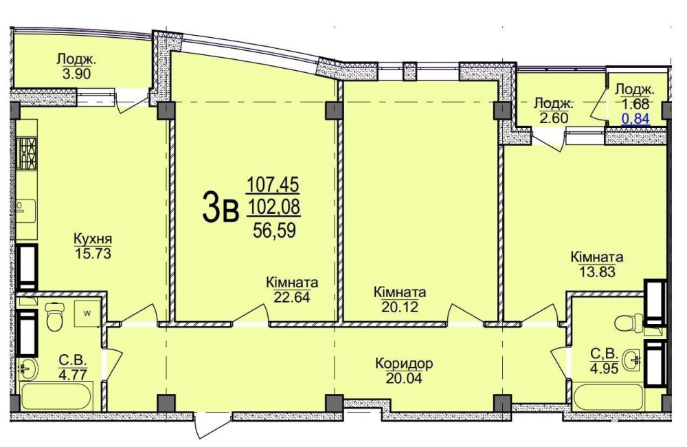 Тип квартири - 3Б.