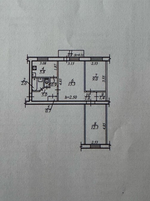 • Площадь кухни 5.8 м2