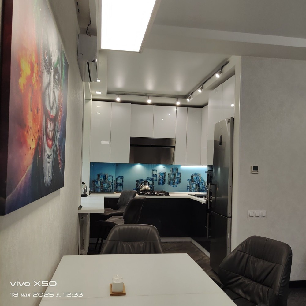 Квартира comfort+ класса. Сталинка утепленная 100 мм пенопласт, два кондиционера ( могут отапливать), теплые полы, двухконтурный газовый котел, варочная панель, вытяжка, холодильник, микроволновая печь, духовой шкаф, посудомоечная машина, стиральная машина (сразу может высушить вещи), сантехника grohe, ванная, душевая кабина с тропическим душем, дубовые двери, огромная кровать тоже из дуба с очень классным матрасом, диван, гардероб. Квартира для кайфового проживания, все продумано.