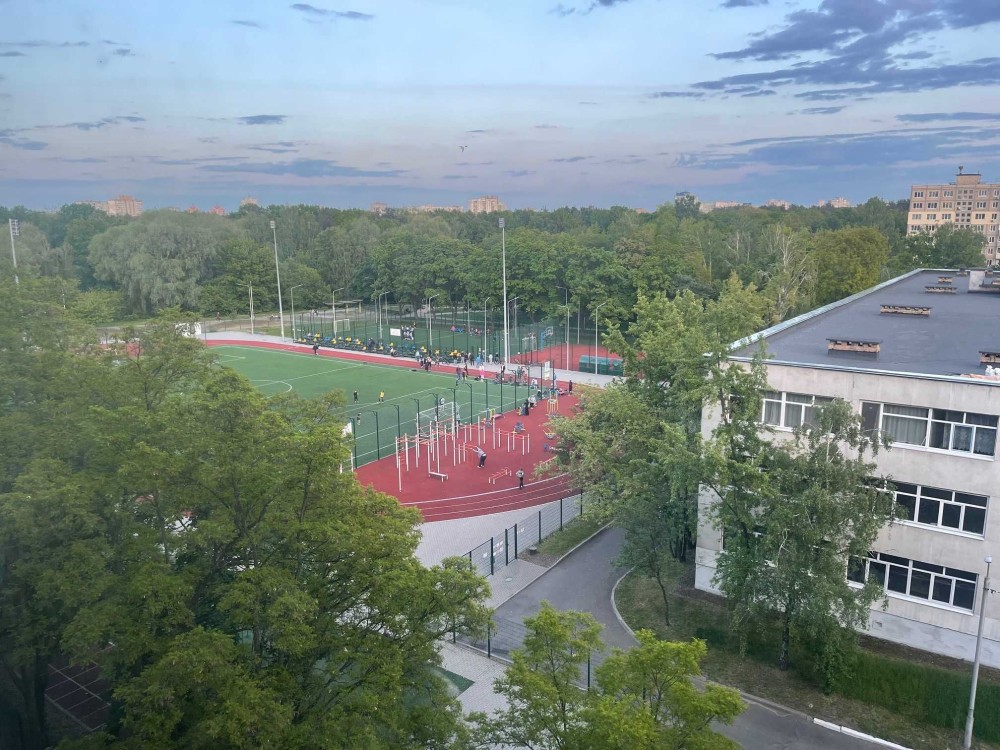 Будинок у дворі, поряд стадіон, магазин, школа, садок