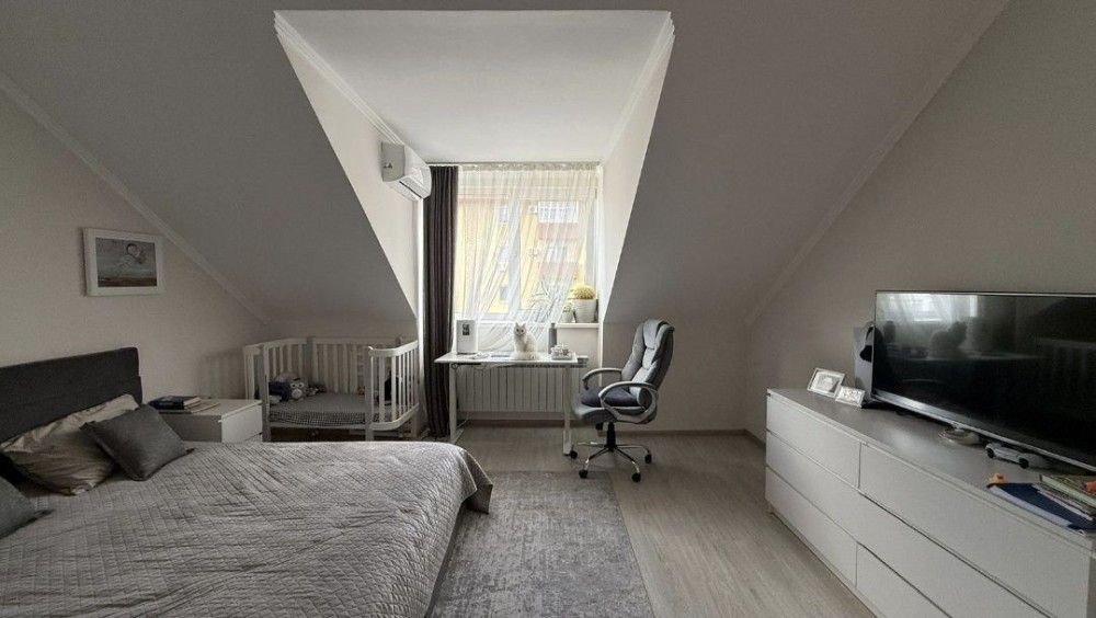 Квартира в ЖК « Олійника» двоярусна, 2й та 3й поверх, 3х кімнатна,з двома санвузлами, окремою кухнею і балконом, дві комори.