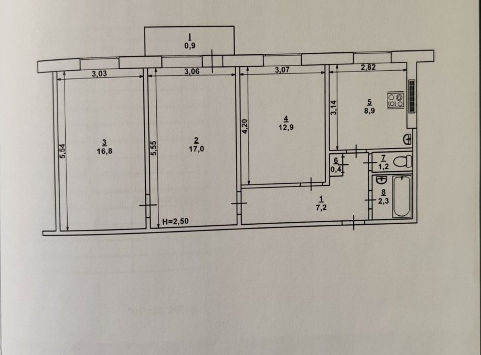 • Площадь кухни 8.9 м2