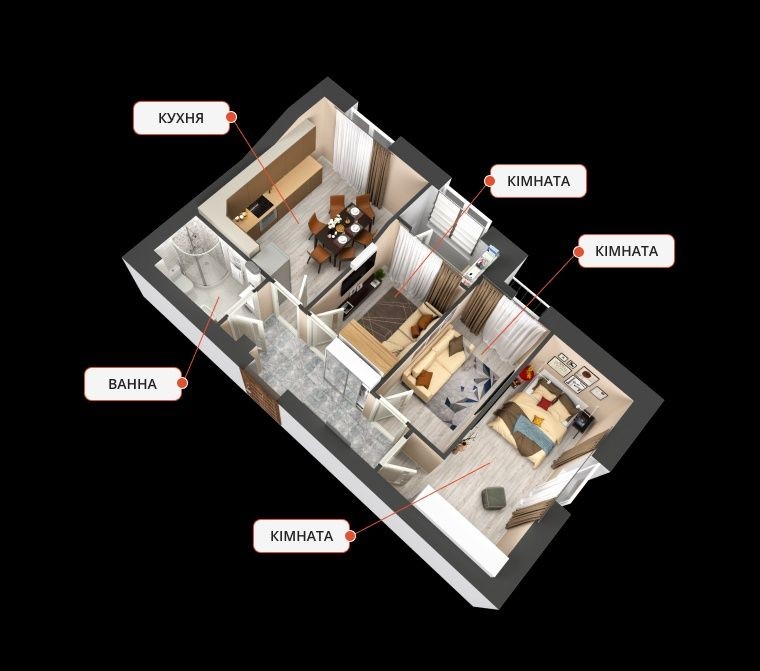 • Трехкомнатная