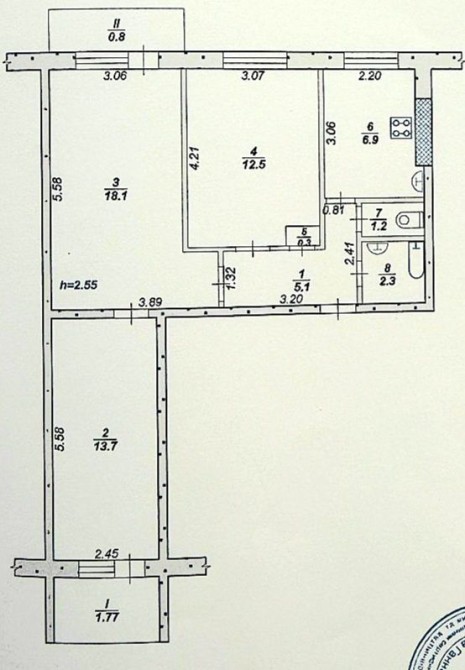 • Площадь кухни 7 м2