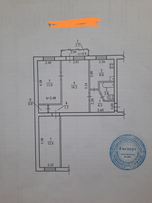 • Площадь кухни 7 м2