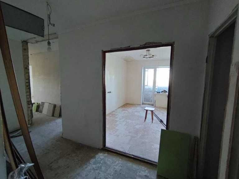 Удобный 4 этаж кирпичного дома, работают два лифта — пассажирский и грузовой. Квартира на 95% подготовлена под ремонт, без лишних демонтажей и скрытых проблем.