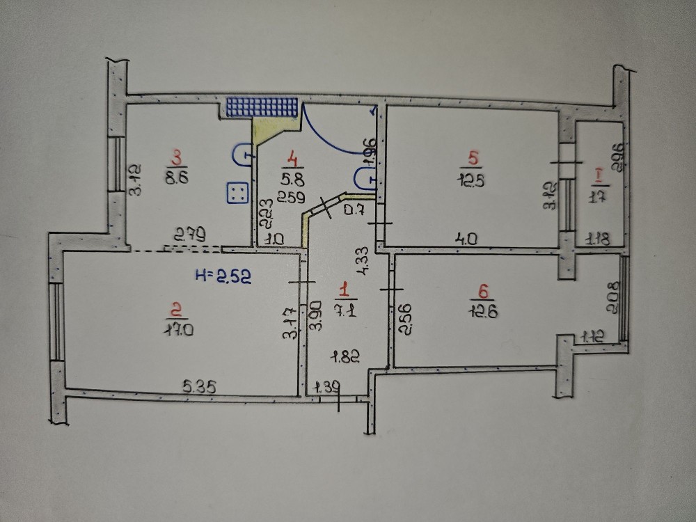 Продам 3х комнатную квартиру (чешку) с холом, по улице Кривбассовская в центрально -городском районе, вторая линия.