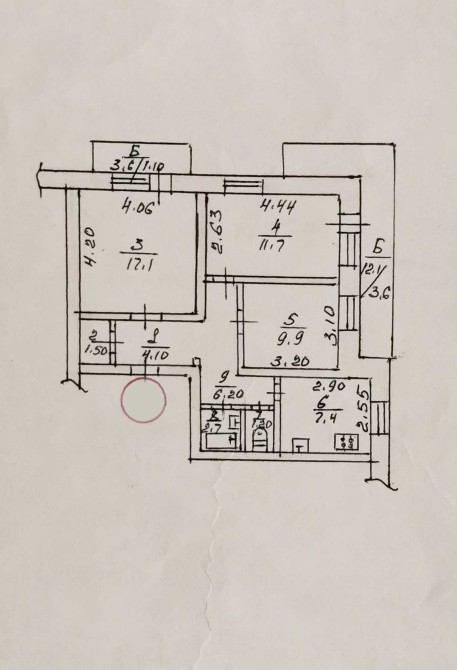 • Площадь кухни 7.4 м2