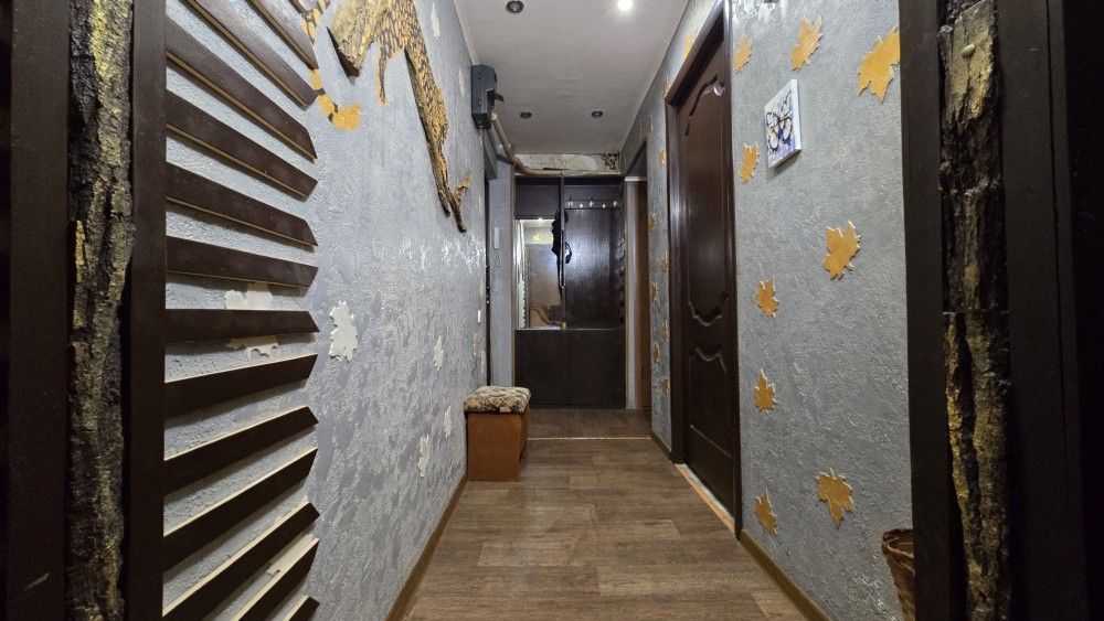 Пластиковые окна, решётки на окнах, трубы, утеплённые полы, качественный линолиум , с/у- кафель, натяжные потолки, стены ровные, с декоративной отделкой и изображениями, утеплённая входная дверь класса СТАНДАРТ с хорошими замками.