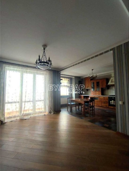 Квартира знаходиться на 10-му поверсі 10-поверхового будинку. Загальна площа - 144 м2, житлова площа (3 роздільні кімнати) - 64м2, кухня-вітальня - 37м2, 2 санвузли, 3 лоджії, балкон, пральна. У квартирі виконано якісний капітальний ремонт, паркет на підлозі. Продаж з меблями та технікою.