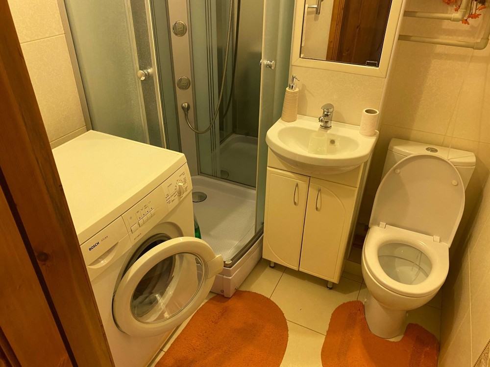 Остаётся стиральная машинка, бойлер, холодильник, кровать.