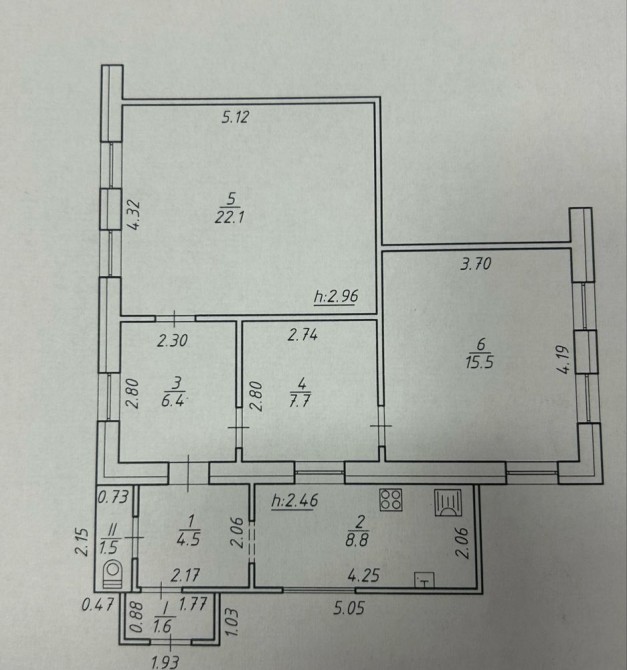 • Площадь кухни 8 м2
