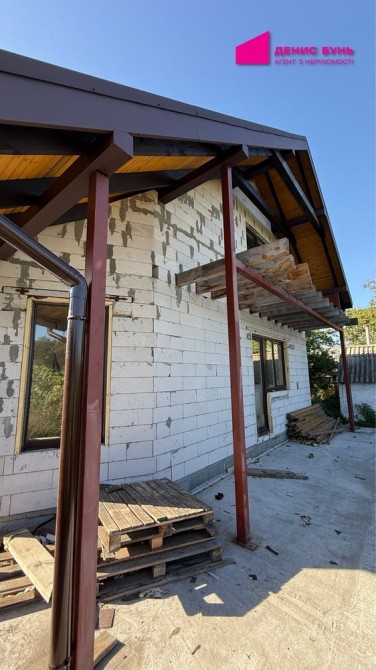 Будинок побудований з газоблоку, дах — м’яка бітумна черепиця.