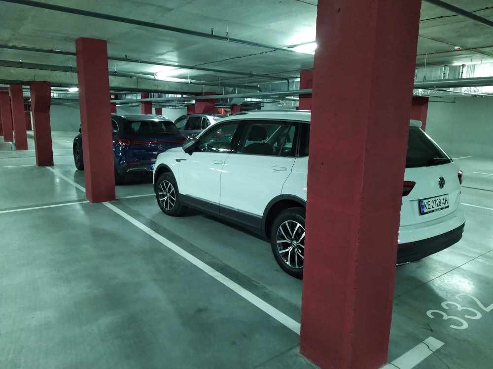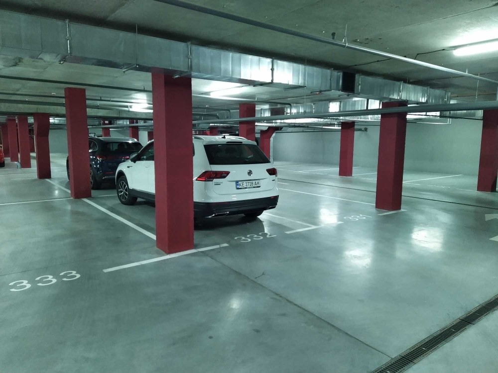Зручне розташування паркомісця по ходу руху по паркінгу, поруч ліфти та комори. Місце не кутове, не пристінкове, зручно паркуватися навіть на великих авто.
