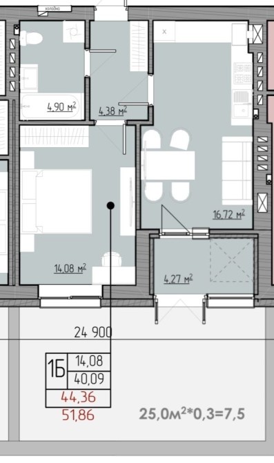 • Общая площадь 44.36 м2