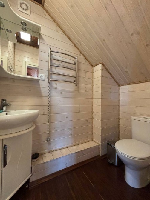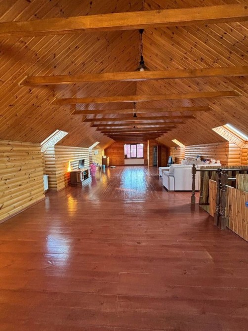 Мансардний поверх – величезна кімната, обшита деревом, санвузол.