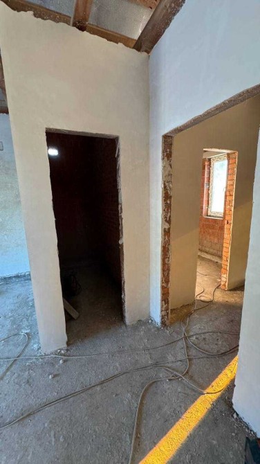 Продається будинок 100 м² на ділянці 5 соток. Планування зручне для сім'ї: простора кухня-вітальня, окремі спальні, санвузол та котельня. Всередині вже залита чорнова стяжка підлоги. Приємний бонус — у вартість входять газовий та електричний котли.