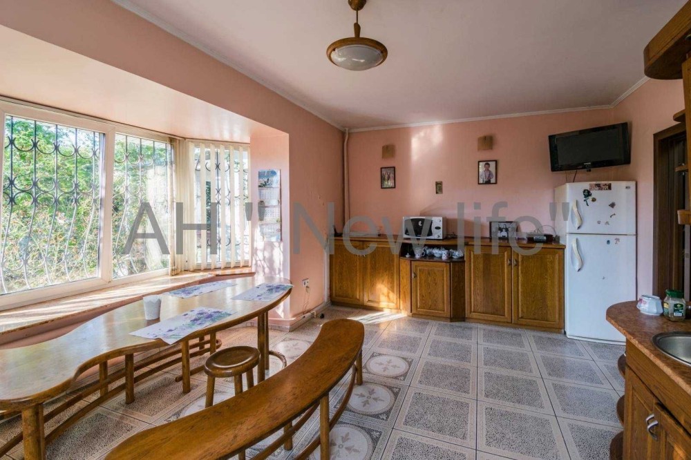 Велика простора кухня з панорамними вікнами. Достатня кількість кімнат для великої родини. Встановлено газовий та твердопаливний котел. В будинку виконаний косметичний ремонт.