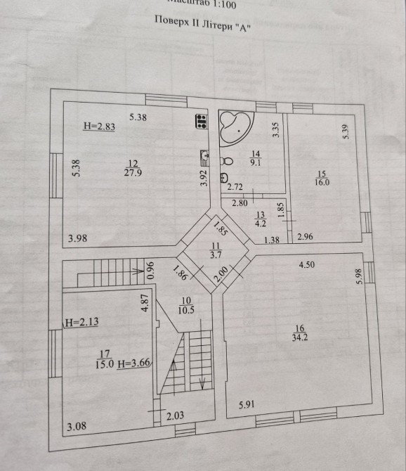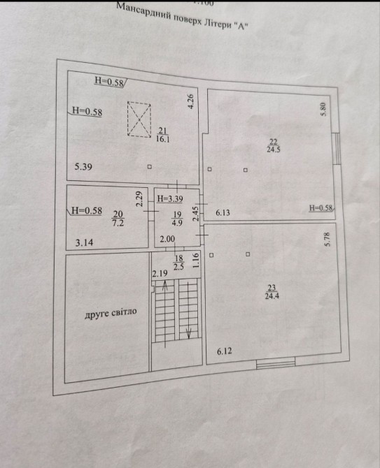 Будинок має цокольний поверх, перший та мансардний.