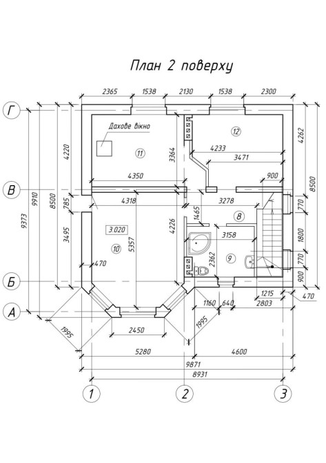 Висота 2 го поверху від 2 м в найнижчій точці.