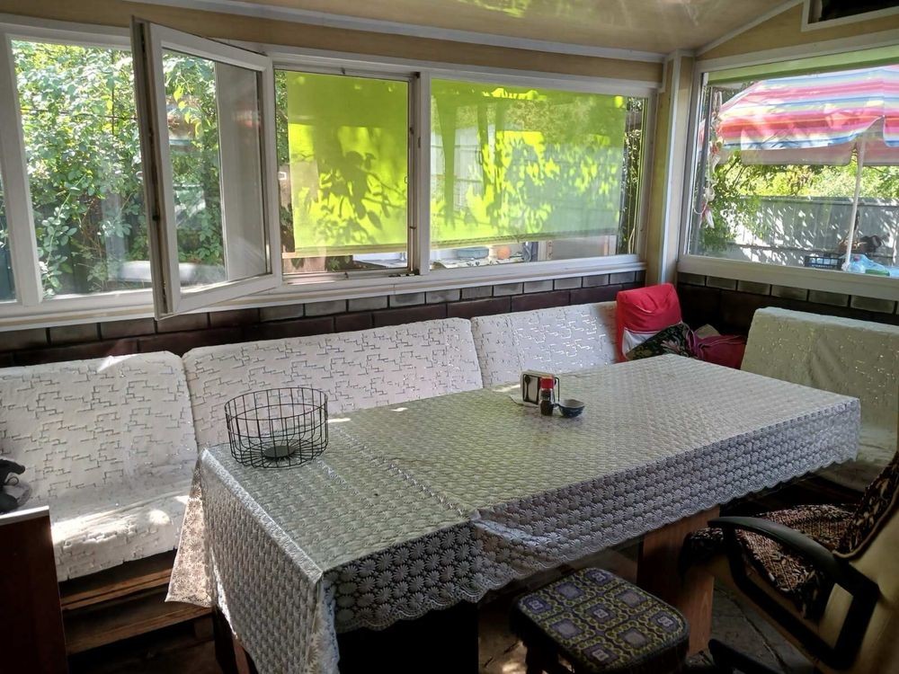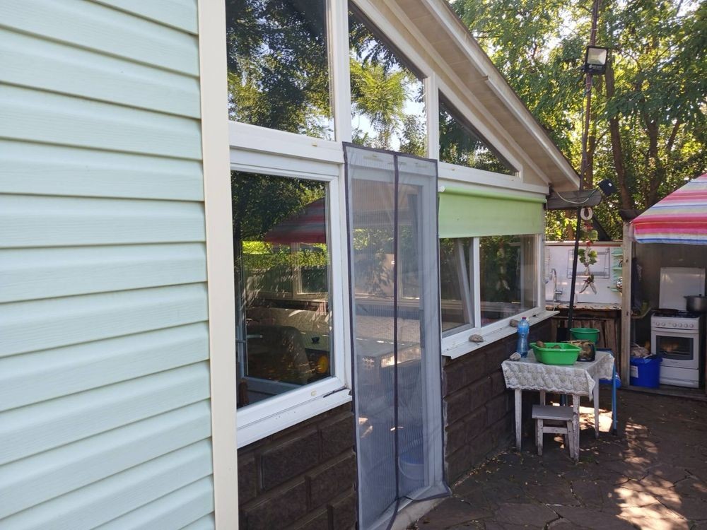 Скляна літня веранда, повністю облаштована.