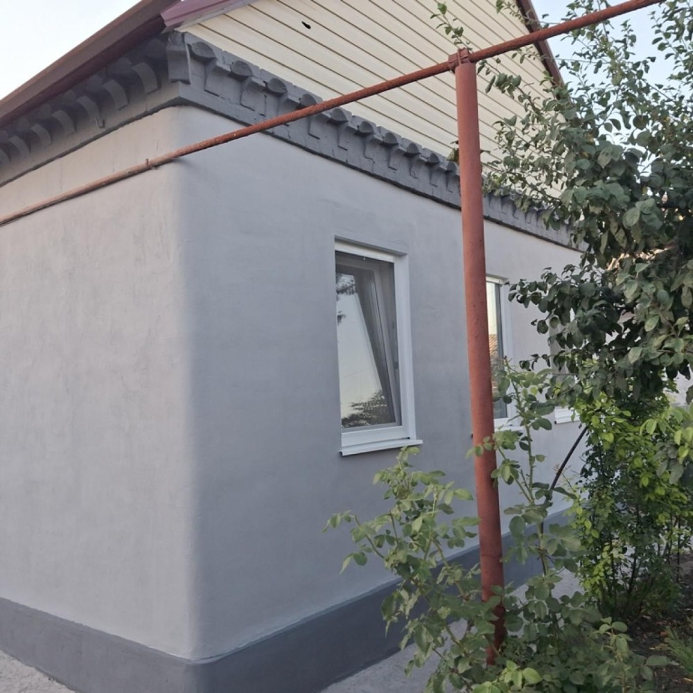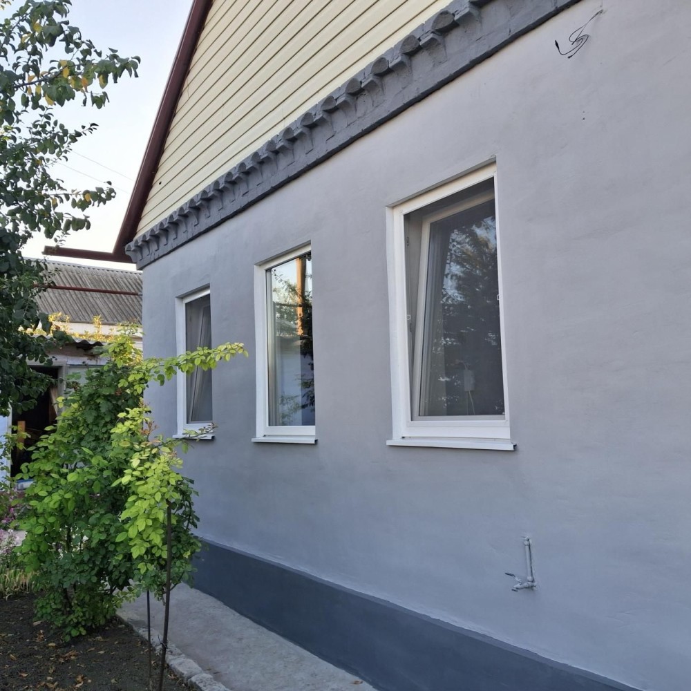 Будинок із шлакобетону площею 60/ 36/6 м кв. на високому цоколі із високою стелею (Н-2.7м). Будинок газифікований зі зручностями ( с/в сумісний). Нова металева покрівля, нові пластикові 3-х камерні вікна Rehau, нові сучасні радіатори опалення. Стан будинку -житловий у стадіі косметичного ремонту . Вода у будинок заведена зі свердловини, каналізація –зливна яма за двором. На ділянці площею 5.5соток розташовані великий гараж (7,0 Х4.5 )м, літня кухня із 2-х кімнат з опаленням та льохом, сарай. Є місце під альтанку, сад та город. Зручне місце розташування : до вул. Передова- 200м, до ж/м Кам*янський з розвинутою інфраструктурою та зонами відпочинку відстань1,5 км. Ціна 40000у.о. Телефонуйте! Вибачте, на повідомлення не відповідаю.