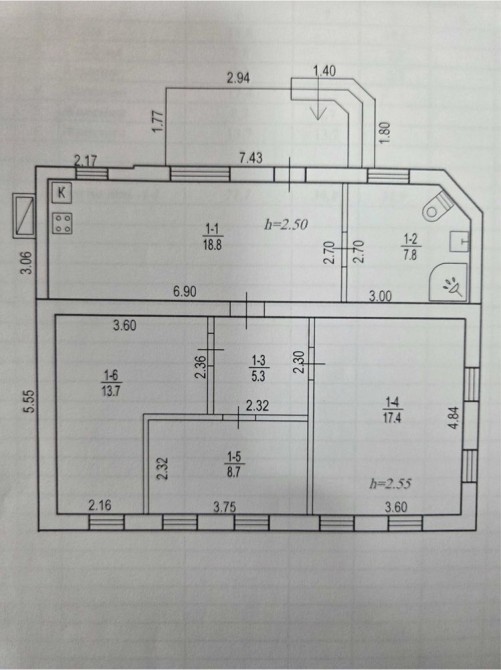 Кухня 18 м2 та величезний санвузол.