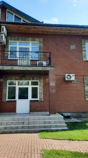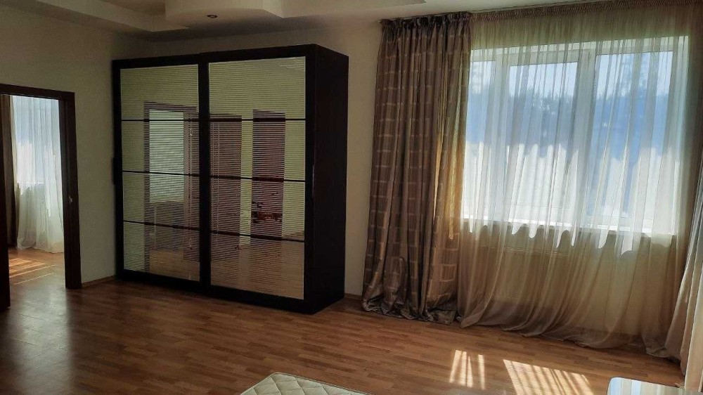 Здається в оренду квартира 320 м2 + 4 сотки землі. Підвал + 3 поверхи. Перший поверх: вітальня, кухня-їдальня, с\у. Другий поверх: 3 спальні, 2 с\у. Третій поверх-мансарда. Свіжий сучасний ремонт. Меблі та побутова техніка. Кондиціонери. Місце для відпочинку в саду, альтанка, газон, зона барбекю.