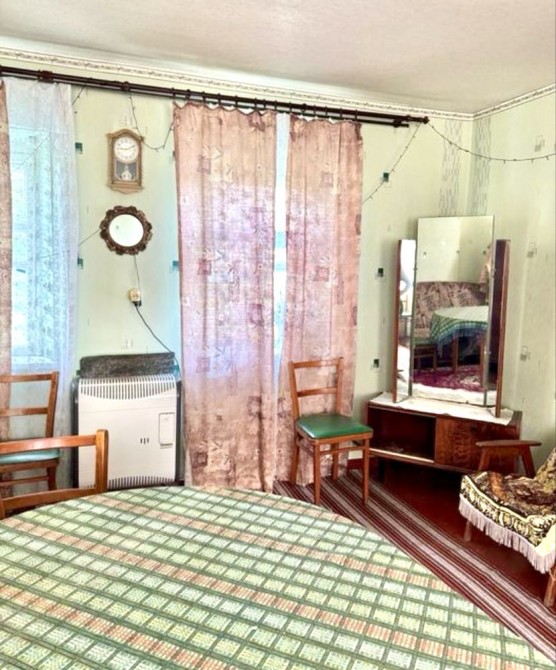 Дом в с.Заболотье, Шосткинский район. Общий вид с огорода (фото 1) Слева деревянный сарай ~ 24м2 (фото 2) Возле сарая погреб (фото 3) Летняя кухня ~ 10м2 (фото 4) Возле летней кухни есть скважина под глубинный насос (фото 5) Жилой дом ~ 50м2 (фото 6) Прихожая (фото 7-8) Коридор (фото 9) По коридора прямо сразу веранда (фото 10-11) Налево по коридору проходная комната с половиной грубки, двумя столами и счетчиком электроэнергии (фото 12-15), дальше комната со второй половиной грубки (фото 16-19) Направо по коридору кухня с печкой и лежаком (фото 20) Пол везде хороший. Долгов нет. Есть сад и плодовые деревья. Состояние все на фото.