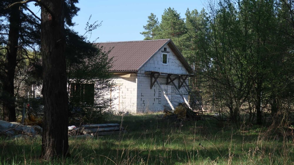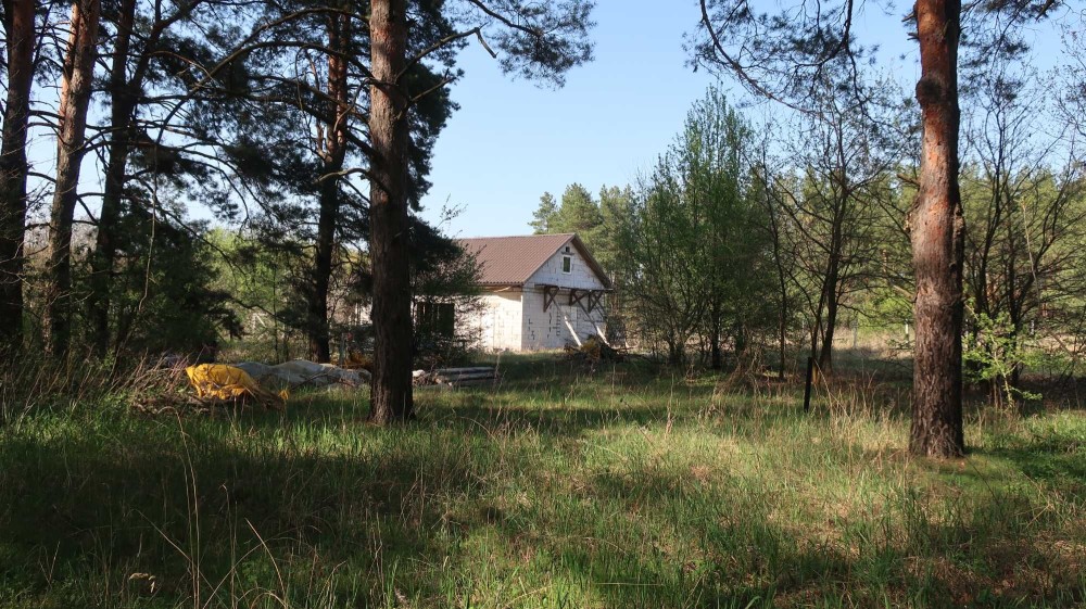 На 22 сотках соснового лісу, побудована коробка будинку 84м2.