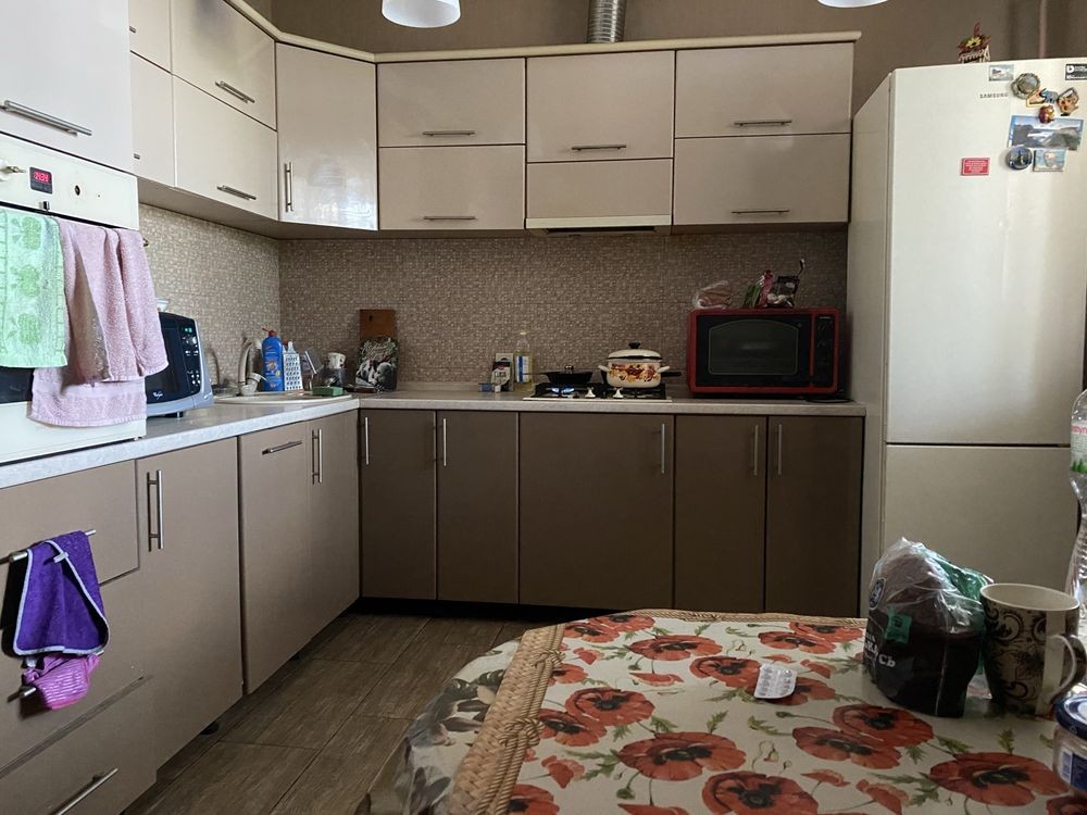 Продам будинок, район поворотка, всі зручності, опалення газ(двухконтурний котел), також є дровяний котел. Площа 97кв м, три спальні по 12 квадратів, зал 22кв м.,кухня 14кв, санвузол сумісний, 8кв.м. Коридорна система. На ділянці 6сот, великий гараж, літня кухня, сарай та хоз постройки з металопрофілю. Будинок 1990г , з білої цегли. Разом з будинком продається окрема земельна ділянка, яка входить до ціни будинку.