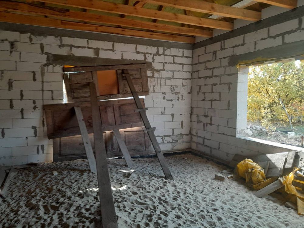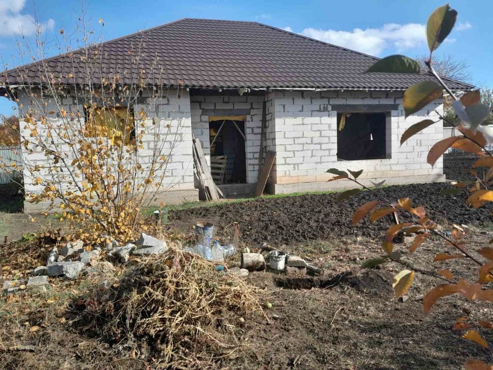 Будинок знаходиться за адресою Чкалова 28. Новобудова, без внутрішніх робіт. Площа будівлі 100 м кв . Будинок з газоблоку, дах металочерепиця. Планування: 2 кімнати, вітальня ,кухня, сан вузол, гардеробна. Територія 10 соток. Зливна яма нова 25 кубів. Проведено воду, електропостачання.