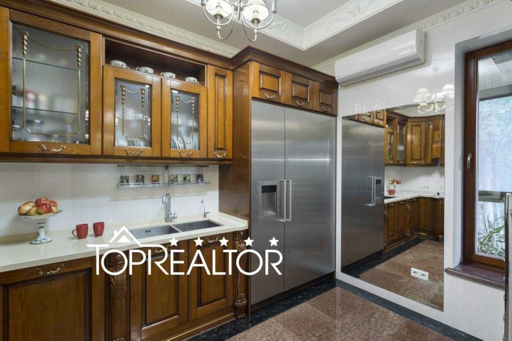 Продам 4-рівневий будинок з видом на Ботанічний сад. За проектом передбачені: вітальня, 4 спальні, кабінет, засклена веранда з видом на Ботанічний сад. Загальна площа – 406,3 м2 + 30 м2 засклена веранда. Поруч у дворі висаджено фруктовий сад, площа якого понад 200 м2 (яблуко, слива, черешня), навколо виконано ландшафтне оформлення. Замінено соснові вікна (від забудовника) на листяні, всі підвіконня з граніту, всі двері та паркет з ясена. У будинку 4 санвузли (на першому поверсі для гостей), вся сантехніка преміальних італійських брендів, санвузли викладені гранітом та італійською плиткою, встановлена ​​фінська сауна пр-ва Villeroy, Bosch, душова кабіна з тропічним душем. У будинку 10 телевізорів різних діагоналей, підключених до інтернету та системи відеоспостереження. Передбачено 2 джерела електроенергії від різних підстанцій, встановлено серверну шафу для єдиного управління всіма системами сигналізації, відеоспостереження та супутникового ТБ, змонтовано систему центрального пилососу. Комбінована система водопідготовки забезпечує безперервну та якісну фільтрацію води, окремий договір на водопостачання. У пральні встановлено 2 пральні та одна сушильна машина марки Miele. Все кухонне обладнання також фірма Miele. Кухня – Tomassi Cucine, скрізь підлога тепла з водяним підігрівом. Сходи з граніту. Всі меблі італійські. У будинку проведено колосальний обсяг будівельних та оздоблювальних робіт. Повна комплектація дорогими меблями та інженерією. Під усім комплексом виділено ділянку площею близько 60 соток з виходом на Ботанічний сад, величезний майданчик для активного відпочинку з газоном та автополивом, впорядкована зона відпочинку із ставком та фонтаном, є загальний заїзд зі своєю охороною, до війни мешканці розпочали будівництво 10 метрового басейну. А саме для цієї секції таунхауса виділено свою зону відпочинку з мангалом, батутом і альтанкою. Цей будинок нікого не залишить байдужим! Чекаємо на реальних покупців!